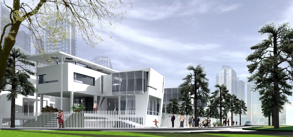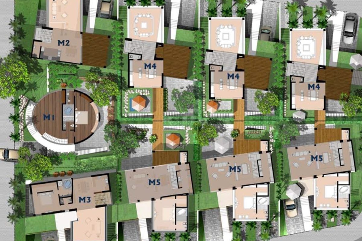 Dự án được phát triển trên khu đất thuộc một khu đô thị mới năng động gần biển của thành phố cảng Hải Phòng, hướng tới khách hàng trẻ thành đạt. Chỉ gồm 9 căn biệt thự đơn lập, ý đồ thiết kế là tạo ra một khu ở có ngôn ngữ kiến trúc hiện đại và đồng nhất. Mỗi căn gồm 2 khối nhà giao nhau có phương song song với các trục đường chính xung quanh. Cao 2 tầng và một tầng hầm, mỗi nhà có một mái phẳng thứ 2, kết nối trên tổng thể thành 2 mảng lớn dài, nhằm tạo ra một bố cục kiến trúc mạnh trên tổng thể. Có thể hình dung tổng thể khu này cô đọng thành 2 “tuyến” và 1 “điểm” (biệt thự ớ giữa). Những mái thứ 2 này vừa che chắn nắng mưa hay thời tiết xấu cho các khối nhà phía dưới, vừa tạo ra không gian kỹ thuật để bố trí bể nước mái, cục nóng điều hòa,…