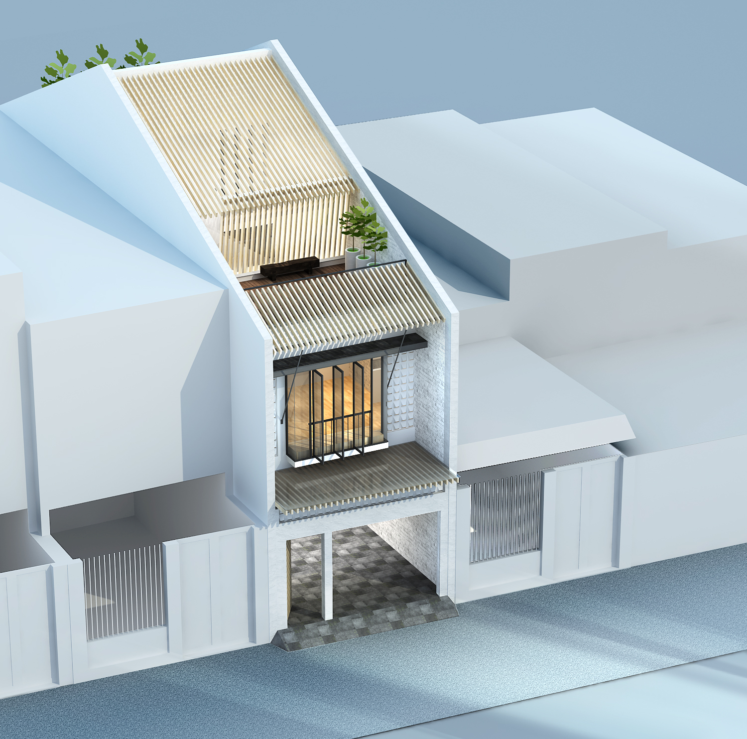 Ngôi nhà 2 tầng, một tầng tum thang và sân thượng được thiết kế cho một gia đình trẻ, năng động và thành đạt tại thành phố Vũng Tàu. Xây dựng trên khổ đất 5x19m, chúng tôi tạo ra một không gian kiến trúc hiện đại, sử dụng nhiều vật liệu mộc trong nội thất. Bên cạnh những khoảng trồng cây xanh nhỏ. luồng thông gió tự nhiên qua các giếng trời và đặc biệt, khoảng trống tầng trung tâm cùng với ánh sáng được lọc qua hệ nan gỗ là điểm nhấn tạo nên “tính cách” của Thai House.