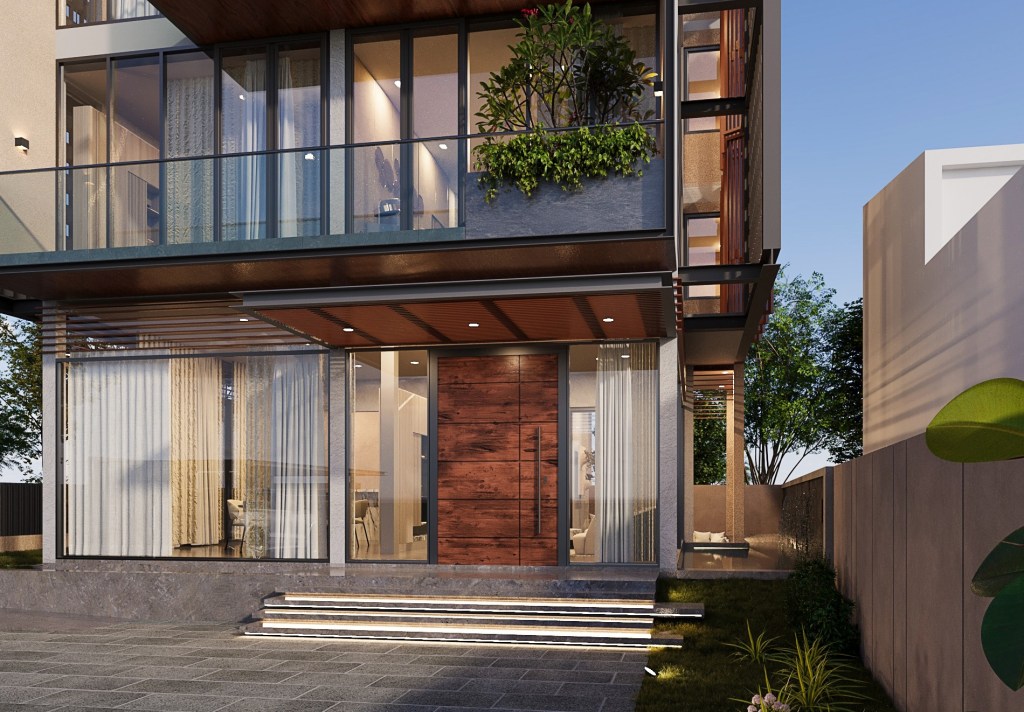 Mặt tiền rộng rãi được khai thác tối đa. Các ban công lớn không chỉ giúp tận hưởng không gian ngoài trời mà còn mở rộng diện tích sử dụng cho phòng ngủ và khu làm việc, mang lại trải nghiệm sống thoải mái hơn.