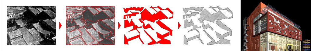 Ý tưởng thiết kế được khơi nguồn từ vị trí công trình – nơi nằm trong bối cảnh đậm nét văn hoá Phố Cổ Hà Nội. Hình ảnh những mái ngói rêu phong san sát nhau trong khu 36 phố phường là cảm hứng để chúng tôi cách điệu thành hệ cửa sổ bố trí ngẫu nhiên, như một sự tái hiện trừu tượng ký ức đô thị xưa.