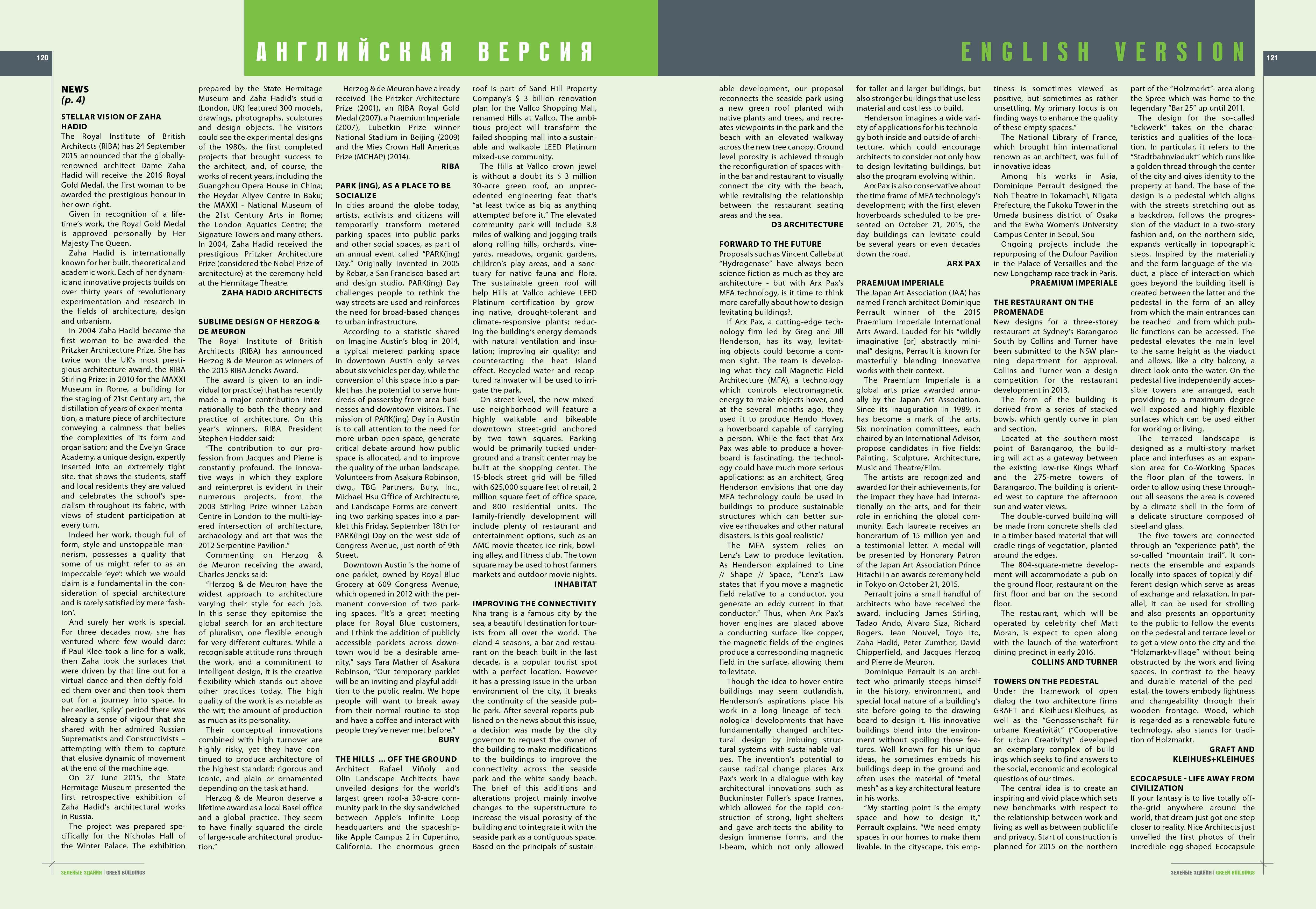 Tạp chí Green Buildings của Nga giới thiệu về phương án cái tạo nhà hàng bên bờ biển Eland Four Seasons Nha Trang của D3 Architecture trong số 03/2015 với tiêu đề Improving Connectivity.